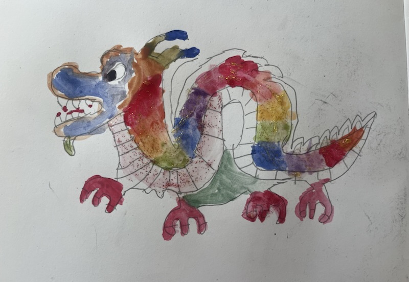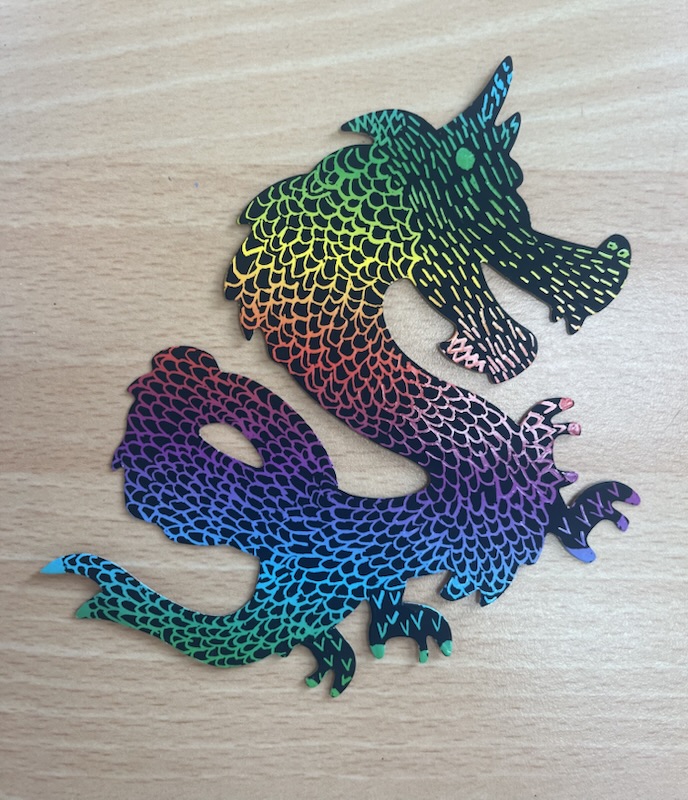 Last Saturday the children had fun and enjoyed making scratch art dragons, then sketching and painting them š